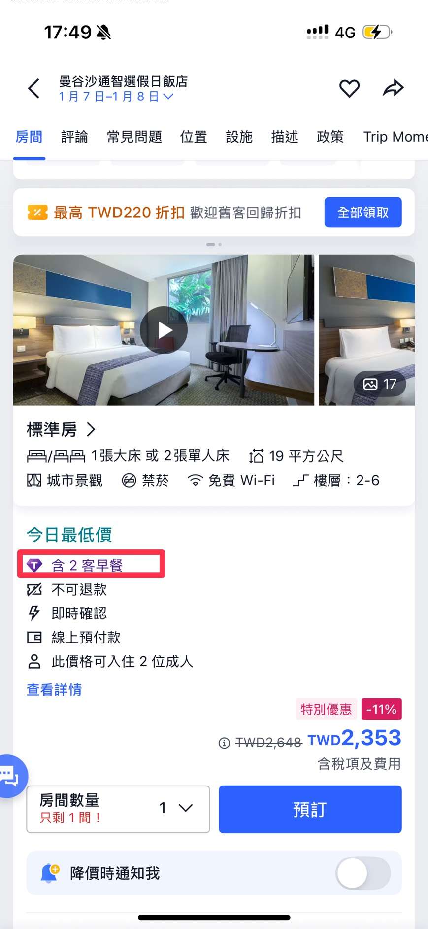 含早餐:部分飯店提供會員專屬免費早餐,直接省下一筆早餐費。