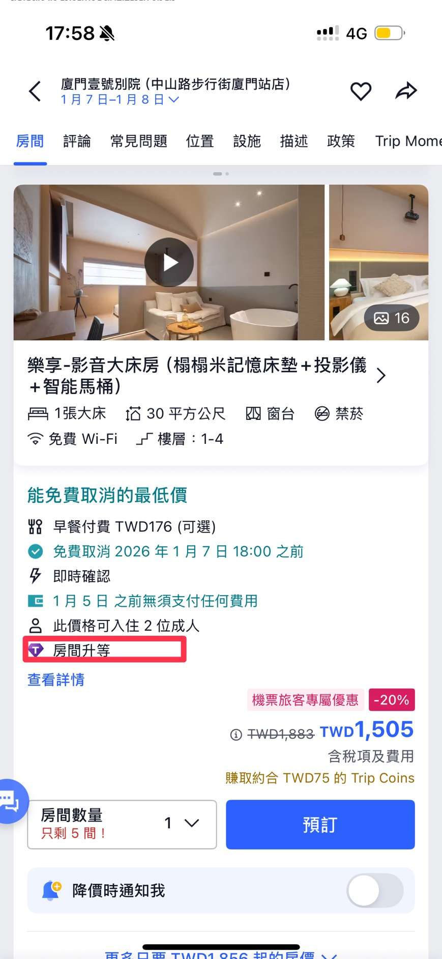 延遲退房:依 Trip.com 會員等級可延後退房,讓你不用早上匆匆忙忙打包行李。