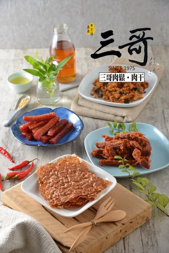 「三哥肉鬆肉乾食品」是嘉義市東市場的知名老店,採用新鮮豬肉配製,古法配方、低添加物,健康又實在,多年來三哥更榮獲優良食品評鑑金牌獎、嘉義市十大伴手禮及嘉市好店等獎項肯定。