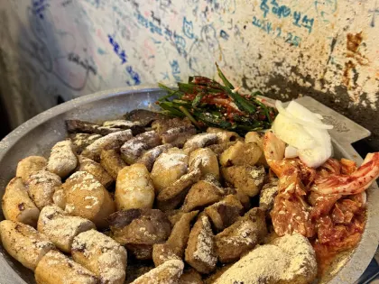 在新沙林蔭道附近逛到腳痠,肚子餓的話,這家「新沙烤牛腸」很值得一吃!一走進去就被會烤牛腸香味迷昏~而且不用擔心烤功,店員會親切幫忙烤到外酥內嫩、超多汁,推薦大家必點招牌「綜合牛腸拼盤」,有牛小腸、牛大腸及牛心,每一口都是不同層次的 Q 彈口感。