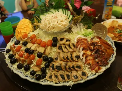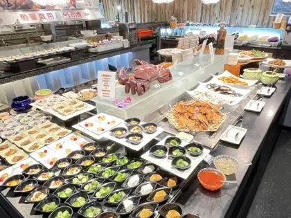 晚餐有兩個時段,分別是 17:00 和 19:00,還有兩次限定料理,透過廣播到指定地點排隊領取隱藏料理,有大蛤蜊、天使紅蝦、蝦蛄撇仔等,絕對讓你垂涎三尺!餐廳提供各式各樣的料理,包括烤麻糬、烤秋刀魚、熟食、炸物、火鍋、海鮮、素食、生魚片、壽司、熱炒等。
