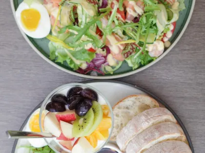 如果你喜歡法式美食,簡捷餐桌 C.C Eatery 是一定不能錯過的地方。進入店內,整個空間都以白色為主,簡約乾淨的裝潢設計,是拍照的好地方。特別是簡捷餐桌的餐點擺盤,以色彩鮮豔的時蔬、堅果、水果搭配,讓人直接就能看到食材的豐富多樣性,超適合拍照。