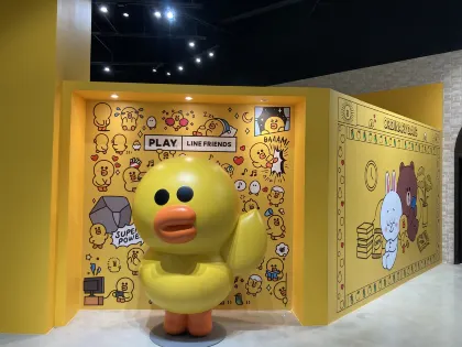 LINE FRIENDS 限定商品獨家販售,娃娃、香氛、吊飾、馬克杯、筆記本等等各項齊全,這些商品彷彿用可愛又邪惡的眼神示意要買它一樣,千萬小心荷包君!此外,還有超Q主題拍貼機、代幣、姓名貼和氣球可以選購留下紀念~