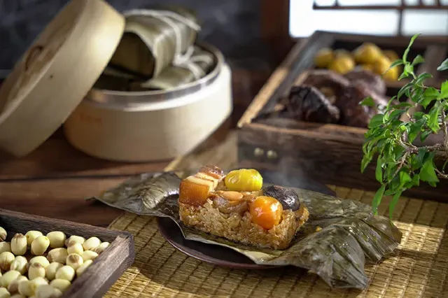 餡料:主要餡料包括糯米、五花肉、香菇、栗子、蛋黃、蝦米和花生。