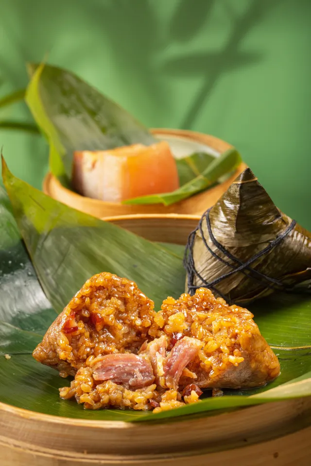 主打「牛肝菌鮑魚粽」選用整顆南非鮑魚,搭配牛肝菌、鹹蛋黃與栗子,展現濃郁風味。「紅麴東坡粽」採用宜蘭噶瑪蘭豬五花,以紅麴與雙酒醬汁慢燉,肉質軟嫩不膩。