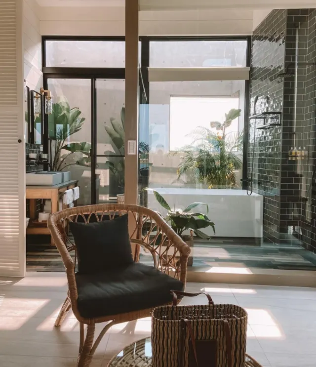 民宿內每個角落都能感受到民宿老闆的用心,不論是運用暖色調的木質傢俱襯托冷色調清水模、穿過大片落地窗彷彿與藍天綠地融為一體,還是提供時尚又有質感的裝潢及備品,為每位下榻於此的旅人獻上最舒適的宜蘭住宿體驗,即便整天待在房裡也是種享受。