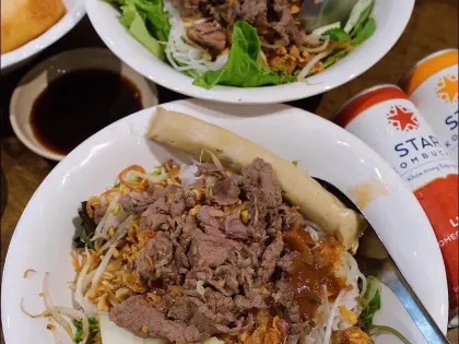 天氣很熱想來一碗涼拌牛肉米線,這次的越南餐廳Bách Phương - Bún Bò Nam Bộ 推薦的料理也是南越的越南美食文化之一。越南分為南越和北越,南方牛肉麵又稱炒牛肉麵,配料包括炸或烤的牛肉配粉絲,配上烤花生、黃瓜、生蔬菜、豆芽,好吃又美味~