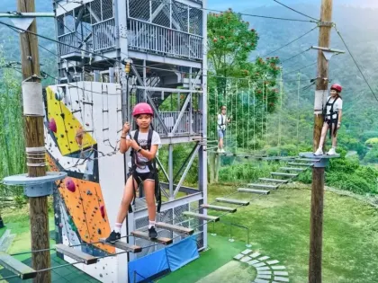 有別於其他凱撒飯店,台南趣淘漫旅最特別的地方就是擁有非常多樣的戶外體驗設施!且滿足不同年齡層大朋友小朋友的需求,如果是低年級生,有泳池和遊戲室,如果是高年級生,則可以挑戰攀岩、高空滑索等。
