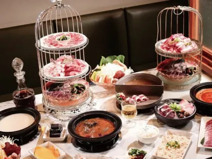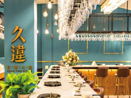 久違石頭火鍋是逢甲夜市附近相當熱門的網美火鍋店,最大的特色就是以蒂芬妮藍打造出復古華麗風格的店內環境,顛覆大眾對「火鍋」的既定印象。肉盤海鮮使用超級吸睛的「鳥籠」上菜,除了視覺感受滿分之外,也超好拍出厲害的美食網美照喔!湯頭除了可以選石頭鍋、蒜香奶油鮮蛤鍋、麻油雞鍋等特色鍋底,也可以選擇火烤兩吃,是選擇障礙者的福音~