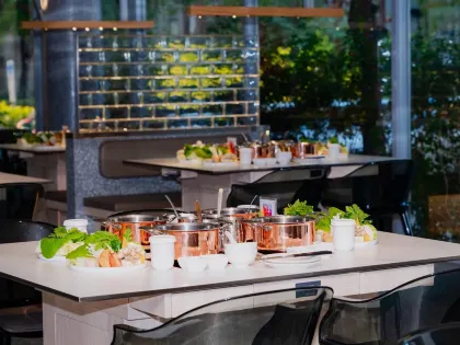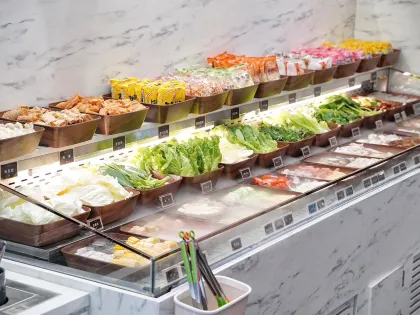 有之和牛是築間餐飲品牌推出的火烤兩吃吃到飽,一次滿足火鍋和燒烤兩個願望,太幸福啦!有之和牛店內以沉穩的暗色調為主,給人高級尊榮的感受。湯底選擇豐富,有老熬牛骨、鮮菇奶香、川香麻辣等,蔬菜、麵食、火鍋料、白飯、冰淇淋、冰沙等火鍋配菜都可以到自助吧拿到飽。😋