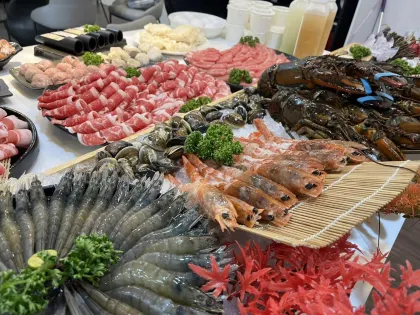 除了頂級肉品美國濕式熟成霜降牛、宜蘭豪野櫻桃鴨、螃蟹、活蝦以外,熟食及甜點自助吧也受到網友們激推!燉飯、壽司、蛋糕、冰沙、紅白酒等通通任你吃~而且自助吧菜品會做季節性變化,像冬天草莓季到來,居然連草莓雪花冰、草莓布朗尼、草莓派都有供應~🍓菜色超級豐富多元,CP 值爆表。