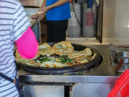 古早柴燒加上濃濃豆香味,實在太吸引人啦!50年歷史的手工豆皮老店「大池豆皮店」,是許多人慕名而來的古早味~店內除了最夯的煎豆包外,豆漿、豆花也是不能少的好味道!在半露天的用餐區,悠閒的吃著煎豆包,外皮酥脆、中間柔軟,一層一層的實在令人意猶未竟,邊吃還能看到豆皮工廠正在努力製作的薄透豆皮唷~假日常常中午前就會賣光,建議要提早抵達以免撲空。