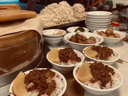 出來旅遊買點宵夜回民宿吃是一定要的吧!戚家糧倉煙燻滷味為在一個不起眼的轉角處,但確時常看到排隊人龍,是連台東在地人都很愛的煙燻滷味~濃濃的煙燻香氣,足夠入味而不過鹹,再搭配店家自製的榨菜,簡直就是絕配🤤 其中的「燻味飯」可是店家熱門款,白飯淋上淋上燻香滷汁,加上豆干、雞絲、筍子,風味十足,值得一試!