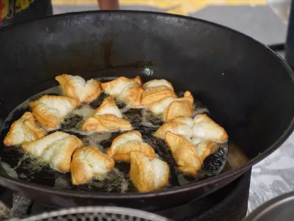 饅頭看似普通的街頭小吃,這家基隆必吃的李家鍋貼饅頭沒有預訂的話卻很難吃到,可見其超人氣。隱藏在巷弄內的老店,饅頭煎成金黃色的焦脆口感,越咀嚼越能感受到麵團的香氣,建議要現吃才能感受到口感最豐富的狀態。