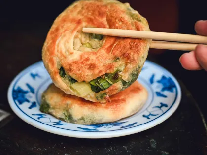 總是大排長龍的周家蔥油餅是基隆在地超過 50 年的早餐店,跟其他不一樣的地方是蔥油餅經過先煎再烤,吃起來不會油膩又相當酥脆,許多人都會一次帶好幾個,不只當早餐也當下午茶,滿滿的蔥花料多實在,是蔥油餅愛好者必嘗試的基隆必吃美食!