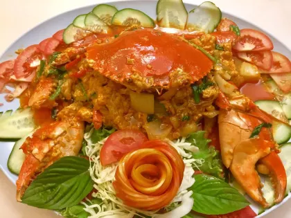 建興酒家在曼谷共有8家分店,在曼谷海鮮餐廳中相當知名,招牌菜「咖哩炒螃蟹」更是被譽為入店必吃的品項,雖然海鮮餐廳的價位比路邊攤略高,但是建興酒家海鮮的新鮮度與調味都在水準之上,泰式酸辣湯與蝦料理也很推薦。