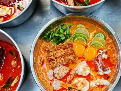 喜歡泰式酸辣湯的旅客,千萬不要錯過這間榮獲米其林必比登推薦的 Jeh O Chula ,這間下午16:30才開始營業的小吃店已經營業超過50年,是泰國在地人與遊客心目中的宵夜首選,而店內每晚10點半以後才供應的臉盆大「酸辣海鮮泰國媽媽麵鍋」更是人氣火爆的曼谷美食,酸辣夠味的冬蔭功湯底配上泰國知名媽媽麵吃起來超級過癮,每天排隊的人潮更是驚人。