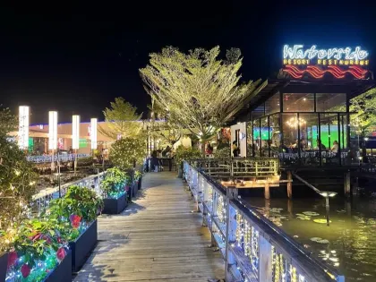 泰國曼谷有許多景色優美的湖畔餐廳,而 Waterside Karaoke Restaurant 更是許多內行人才知道的口袋名單, Waterside Karaoke Restaurant 的佔地寬廣,設有許多開放式的用餐座位,夜幕降臨後可以一邊欣賞浪漫夜景,一邊悠閒享用平價好吃的泰式料理,用餐氣氛非常好喔!