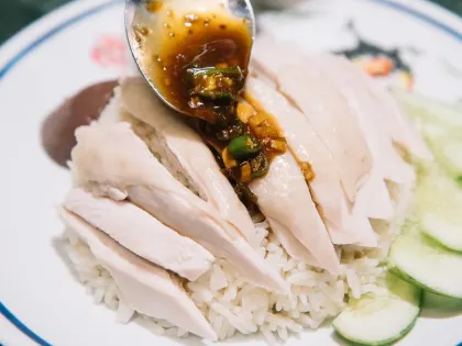 海南雞飯也是曼谷必吃美食之一,而這間紅大哥海南雞飯是曼谷五大知名海南雞飯之一,於1960年起就開始營業,更是連續數年獲得米其林必比登推薦,淋上雞油的泰國香米配上新鮮的切塊雞肉,再沾上店家提供的特調醬汁,讓人忍不住允指回味。
