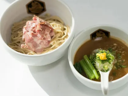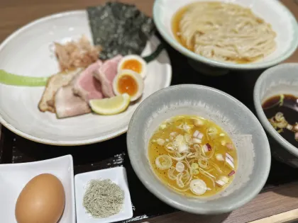 日本拉麵排名全國第四的拉麵吉左右,是由一對夫妻所經營已經 16 年了喔!一直以來都很受到附近上班族的愛戴,自製的手工粗拉麵,與濃郁但不厚重的魚介豚骨湯頭成為常客們的心頭好,而叉燒是入口即化的肩腰肉,配料都是清爽的醬油味,是看起來樸實無華,卻能牢牢抓住人心的美味!最受歡迎的是沾面:味玉沾面 ¥ 1,100,配料 ¥ 250