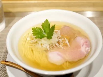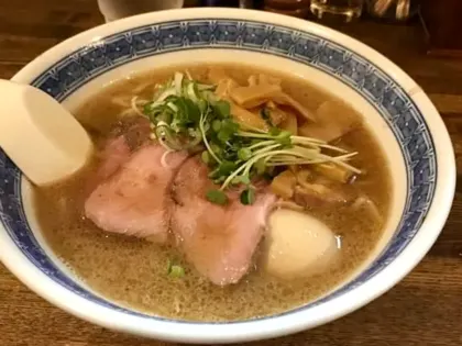 位於東京惠比壽代官山的拉麵名店,無添加的手打蕎麥拉麵,是質感細緻的細麵,搭上煮干充滿鮮味的淡麗湯頭,最受歡迎的是餛飩中華拉麵 ¥ 1,100,配料包括大蔥、竹筍3個、菠菜、紫菜、沙丁魚、烤豬肉叉燒1個、雞肉叉燒1個、餛飩3個,華麗豐盛的配料令人覺得老闆在這物價上漲的年代一定是瘋了!