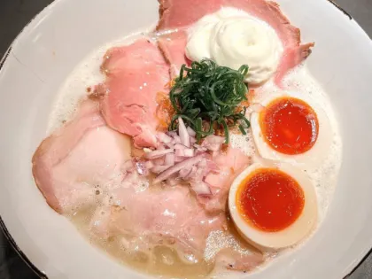 2023 年 3 月才開業的Ramen Afro Beats,是東京拉麵名店 Ramen Break Beats 的第二間店,主打的是雞白湯拉麵,但它可不是普通的雞白湯,是只用熊本“天草大王”土雞熬製高湯,並使用了含水量高的三河屋制面麵條,湯頭的部分感受複雜有深度,油脂與風味都達到了巧妙的平衡!日本網友超推的特製土雞白湯拉麵 ¥ 1,650.