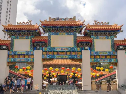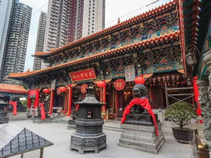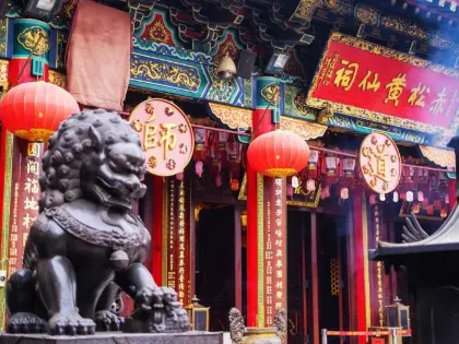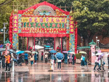 黃大仙祠因為有求必應而成為遊客喜愛的香港景點,主要供奉道教仙人黃初平,廟內還供奉儒、佛兩教的孔子、觀音等,一間廟宇包含三種宗教實在是太特別了,加上這裡的月老聽說非常靈驗,也吸引許多人前來求姻緣,建築也是黃大仙廟得看點,祠內的九龍壁是仿照北京故宮的九龍壁而建喔!