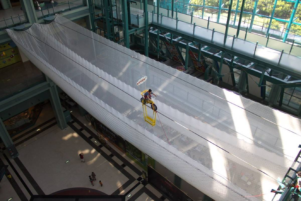 空中腳踏車無疑是士林科教館最熱門的設施,假日常常出現排隊人潮等著體驗!在五層樓高的腳踏車上體驗高空快感,因結合力學原理,所以即使傾斜或「壓車」都不會失去平衡,超級刺激呢!