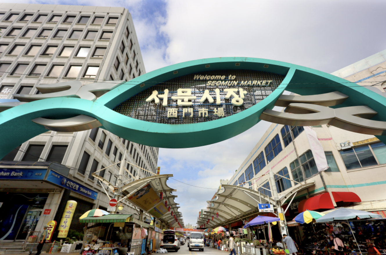 西門市場是大邱歷史悠久、是韓國三大市場之一,最有名的就是麵食:現削刀削麵,尤其秋冬來一碗,直接讓全身暖和起來!也有各式各樣當地小吃,如辣炒年糕、魚餅和韓式炸雞等,以及各種服飾、飾品和手工藝品。