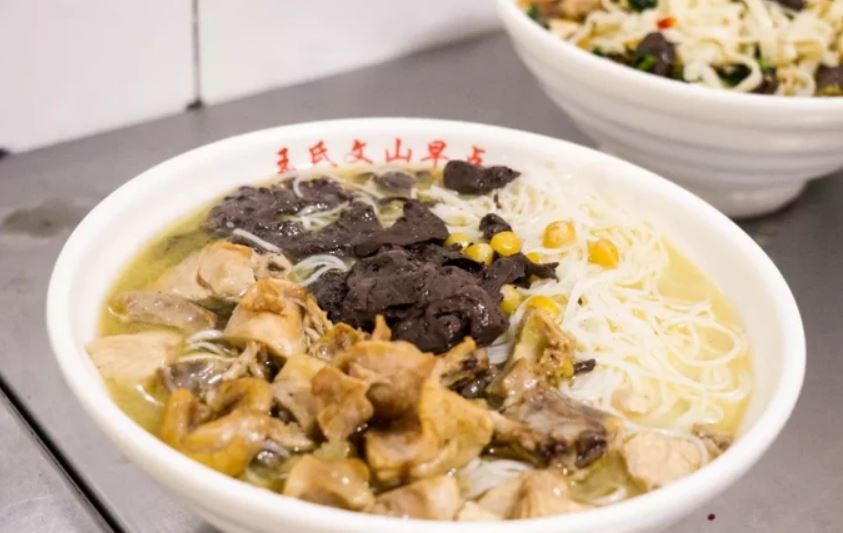 就開在翠湖公園旁邊,是當地人最愛的隱藏版小店!他們家的招牌雞湯米線湯頭鮮美,米線 Q 彈有嚼勁,搭配雞肉與鴨血,吃完超有滿足感!推薦也可以試試加辣的卷粉,口感更上一層樓~