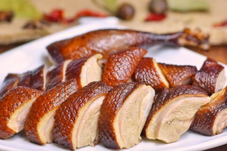 趙鴨子甜皮鴨.非物質文化遺產將鴨滷過後,再用濃濃冰糖醬汁淋上,讓鴨皮與糖衣融合,口感酥脆,甜鹹交織,鴨肉依然軟嫩,一入口鴨肉油脂香味滿滿,唇齒留香。
