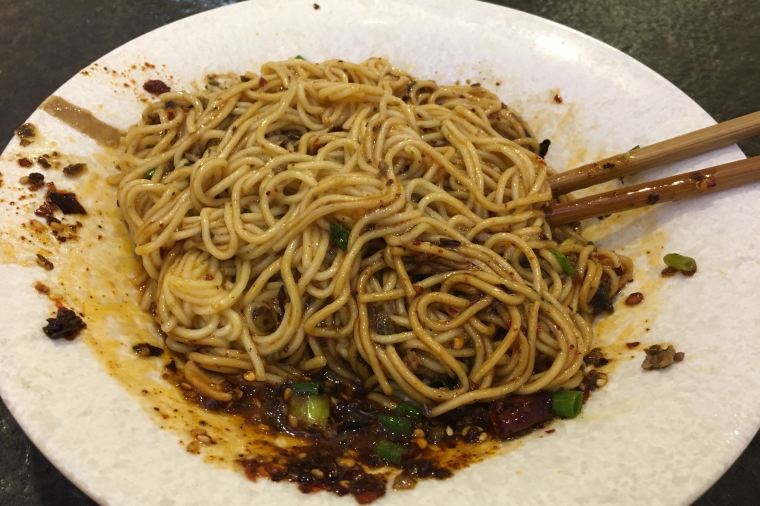 擔擔麵是四川的經典麵食,是成都人日常不可或缺的美食。老成都擔擔麵麵條雖是細麵,但口感仍然彈牙,最大的特色是以麻辣鹹香的醬汁拌麵,再拌入配料如肉燥、芝麻醬、碎花生、蔥花和豆芽菜等,味道濃郁且很入味。小編建議擔擔麵一上桌就趕快拌開,以免麵條糊掉。