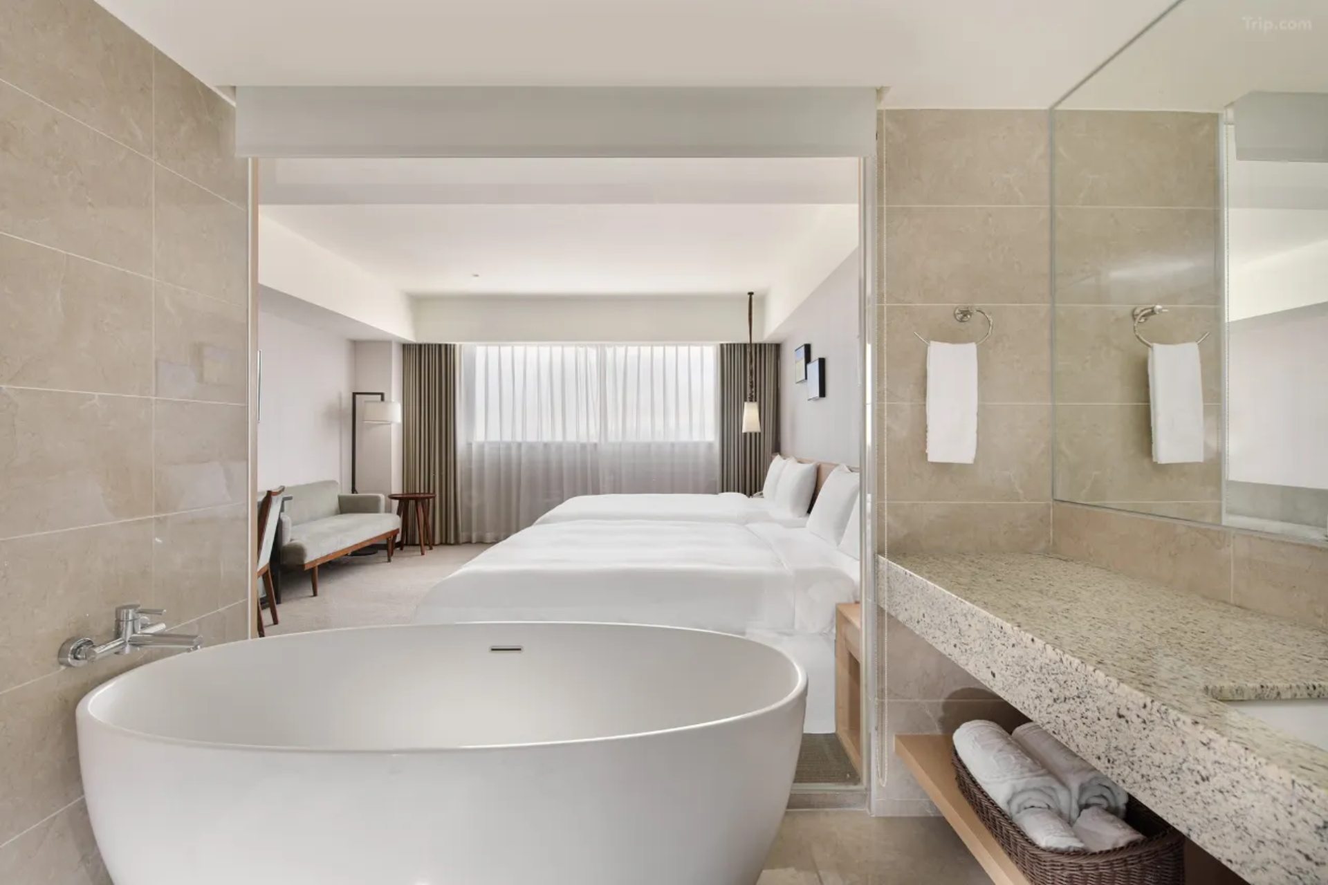 想熱鬧與享受一次滿足?台東桂田喜來登酒店非常適合跨年入住。位在市區中心、距離跨年晚會現場僅 1.6 公里,散步或騎腳踏車都方便。最吸引人的是海景房,從陽台就能把台東海岸線盡收眼底,跨年氛圍瞬間升級。飯店還有兒童樂園、三溫暖、腳踏車租借,親子旅客也能輕鬆玩。
