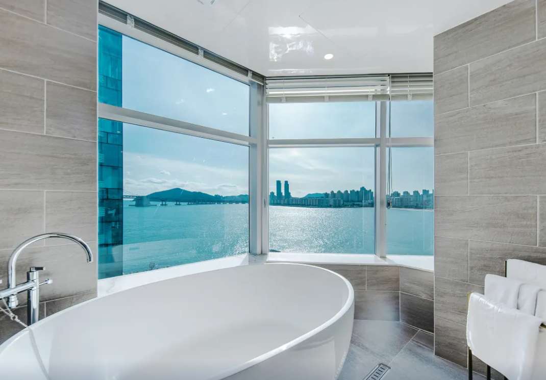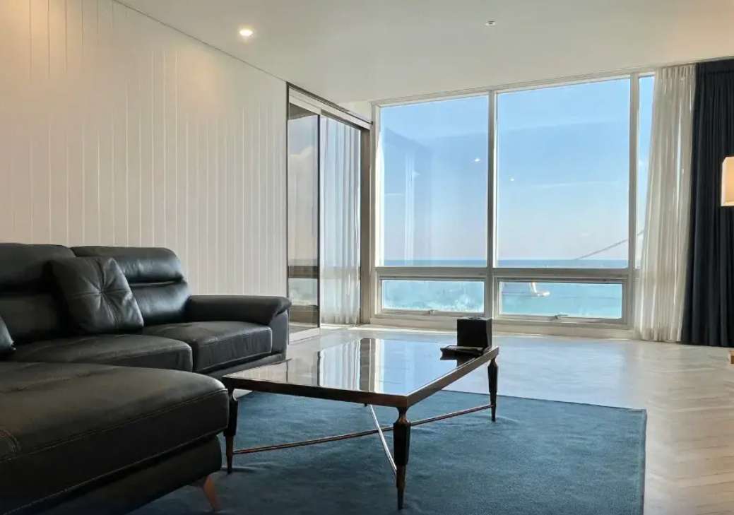 超讚海景,很美。清晨下樓,悠閑漫步海灘,看鳥鷗覓食嬉戲,長者游泳浴足,犬衹撒歡奔騰,寧靜而滿足。夜間臨窗遠眺,對岸燈紅酒綠,霓虹閃爍,廣安大橋燈光大秀,海上遊艇煙花印染夜空,派對達人的不二選擇。深夜回屋,水療SPA,盡興滿足,沉沉睡去,明天又是美好的一天。