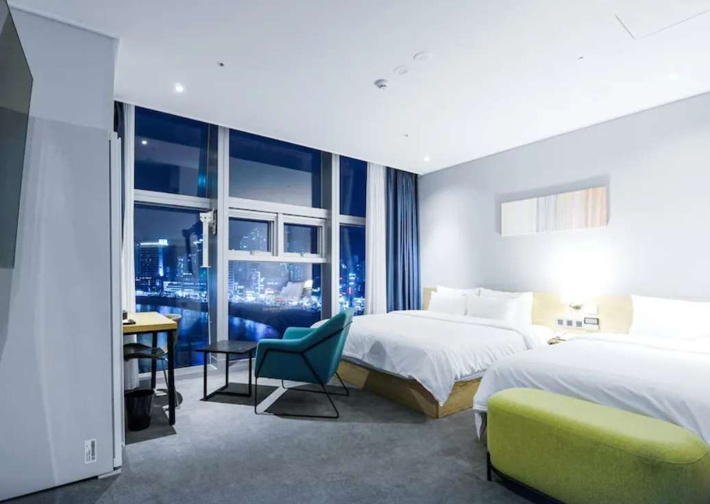 這家酒店值得入住。房間乾淨漂亮,設施齊全。唯一不足的是缺少叉子和湯匙。除此之外,沒什麼好抱怨的。我們住在8樓的頂樓套房。景色優美。房間寬敞,設有兩間臥室、三張大床、兩間浴室、一間私人桑拿浴室和一個大型按摩浴缸。非常適合與朋友或大家庭舒適地入住。下次來釜山,這家飯店將是您的首選之一。
