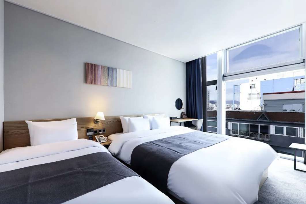 - 章節之後飯店坐落在南川海濱公園周遭,離海邊很近,鄰近有多個餐廳及公車站牌,OLIVE YOUNG 也在周遭。飯店設有停車場,交通算便利。