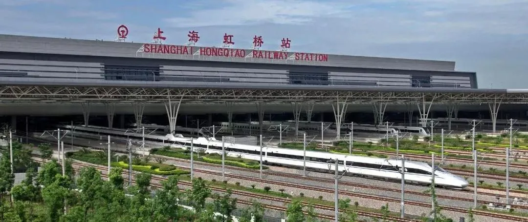 上海虹橋站位於上海市的閔行區,這座現代化的交通樞紐於 2010 年啟用,面積達 24 萬平方米,設有 16 個站台和 30 條到發線,可說是長三角地區的重要交通樞紐。上海虹橋站結合了航空、地鐵、高鐵、公車、長途汽車等多種交通運輸,除了與上海虹橋國際機場 T2 航廈相鄰,還有京滬高速鐵路、滬寧城際鐵路、滬昆高速鐵路等多條重要鐵路途經,站內更有購票大廳、候車大廳、醫療站、母嬰室等多樣化設施,幾乎與國際機場規模相去不遠。