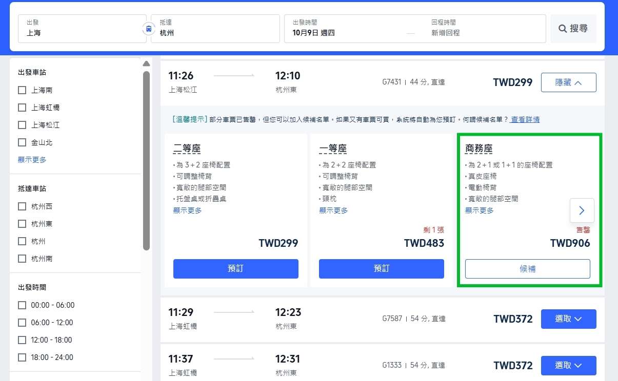 可以在 Trip.com 試試候補功能,很多人臨時退票時會釋出座位。大陸高鐵商務艙能不能改簽?