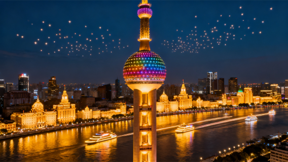 東方明珠位於於陸家嘴金融中心,隔江對岸就是外灘。東方明珠由三個斜筒體、三個直筒體和十一個大小不同的球體組成,象徵「大小珠聯」的美好寓意。你能在登上東方明珠,俯瞰迷人夜景,或是在日落時分乘坐黃浦江遊船,感受現代上海的美景。