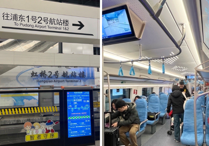 1. 市域機場線:市域機場線於2024 年底開通,從虹橋機場到浦東機場只要 40 分鐘,是所有交通方式裡車程最短的!這條路線共 7 站,全程票價人民幣 26 元,運營時間為 6:00~22:39,發車時間約 15 分鐘左右。