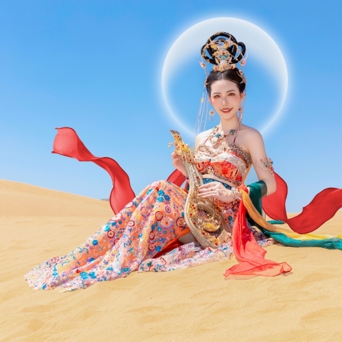 酒店的大門設定別有洞天和巧思,門臉看着不算顯眼,待一步入大堂,瞬間被穹頂的“三兔共耳”覆鬥式藻井震懾住。客房更是把敦煌元素玩出了花:床頭復刻的莫高窟壁畫、駝鈴造型的壁燈、弧形牆面模擬風蝕地貌。最絕的是酒店的水系設計,三個戲水池和一個泳池藏在不同的院落裏,沙漠綠洲的既視感直接拉滿。愛拍照的小姐姐有福了,非常出片,酒店贈送的旅拍也是非常實用,攝影師修圖師都十分專業,選片的時候着實犯了難,每張都好喜歡。
