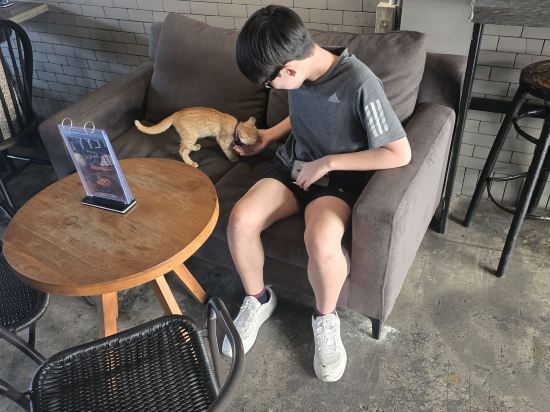 有可愛的貓和親切的主人