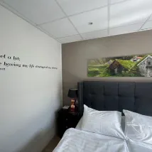 房間算寬敞,地板算乾淨,有大窗戶,對出就是阿克雷里的街道,景色尚算開揚。為於市中心,地理位置優越。然前台在我checkin完後與其他員工取消我的亞洲人姓氏,令人印象差劣。