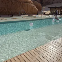The swimming pool is perfect! The view was great~ the room was very clean, we love it! E-bike service is the best and the trampoline