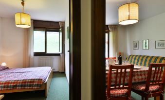 Alba 1 km from Canazei: Comfortable apartment block "Enrosadira", 3 storeys. 3 houses in the residence. 800 m from the centre of Alba, in a quiet, sunny position, 700 m from the skiing area. In the house: central heating system, heating available only from 01.Dec. - 01.May.. In Winter: please take snow chains. Parking at the house. Shop, supermarket 800 m, restaurant 700 m, bar, bus stop 150 m. Ski rental 800 m, ski bus stop 150 m, ski school 1 km, ice rink 750 m, children's playground 700 m. Nearby attractions: Passo Pordoi 12 km, Passo Sella 12.5 km, Bolzano 50 km. Well-known ski regions can easily be reached: Funivia Doleda 1.5 km, Belvedere 900 m, Sella Ronda 900 m. Well-known lakes can easily be reached: Lago di Carezza 25 km, Lago di Fedaia 11 km. Please note: Additional accommodations can be booked. 2-room apartment 40 m2 on 2nd floor. Practical and comfortable furnishings: living/dining room with 1 double sofabed, dining table and TV (flat screen). Exit to the balcony. 1 double bedroom. Kitchenette (4 hot plates, oven, dishwasher). Bath/bidet/WC. Balcony. View of the mountains and the valley. Facilities: washing machine. Parking. Please note: suitable for families. Fridge without freezer, non-smokers only. Maximum 1 pet/ dog allowed. Fire extinguisher, no lift. IT022039C2N6K8A7ZQ