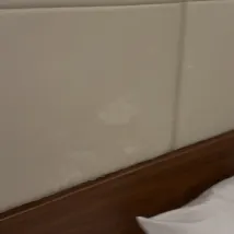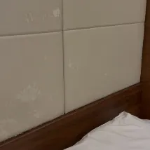 1、酒店房間床頭掉皮,衞生沒有打掃乾淨