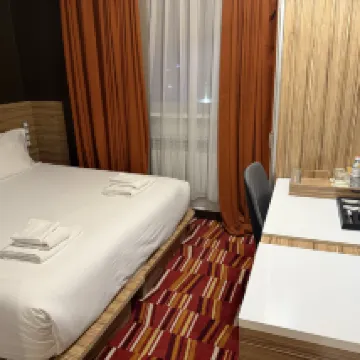 這家酒店還行,但確實缺少一些關鍵設施。優點:地點便利,轉角處就有社區中心和迷你超市。隔壁的Scandalista酒吧餐廳的雞尾酒很棒(食物也還可以)。 缺點:電視好像壞了(我花了大約20分鐘才修好)。馬桶沖水也出了問題,我打電話給前台,結果發現房間裡的電話也壞了😂。客房服務人員「打掃」了房間,但只在我特別要求後才打掃了馬桶。 總的來說,如果你預算有限,我覺得這家旅館還算值這個價錢,但如果你願意/能夠多花點錢,我建議你在阿拉木圖選擇其他地方住宿。