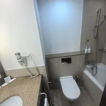 Отель удобно расположен, через дорогу большой ТЦ с супермаркетом, кафе. Удобный подъезд для такси. Вид из окна на стройку, ну и ладно, было тихо.
