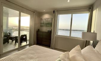 Our GOLD STANDARD 3 Bed/3 Bath condo is part of the up-and-coming Sunset Caribe Belize Resort. This listing includes a 1 Bedroom as well as a 2 Bedroom directly next to each other on the top/5th floor. (There is not an interior door.) You will have the comforts of both condos. Enjoy TWO thermostats, TWO full kitchens, TWO living areas, THREE master bedrooms and most importantly TWO relaxing balconies. You will have expansive views, overlooking the Cayes or Bayside of San Pedro, from EVERY room. The Sunset views are simply breathtaking. See FAQ's BELOW: