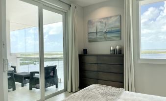 - TWO Patios with 5th Floor Bayside Sunset views; (Each patio has seating for 4 people)